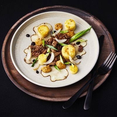 Grillezett hátszín pirított kolbásszal melyhez a Knorr Folyékony ízesítő füstölt cukorral és sült vöröshagymával termékünket használtuk.